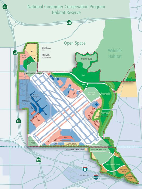Flightpaths and noise were a big concern of residents in South Orange County. This map was designed to show that most fights would fly over sparsely populated areas,